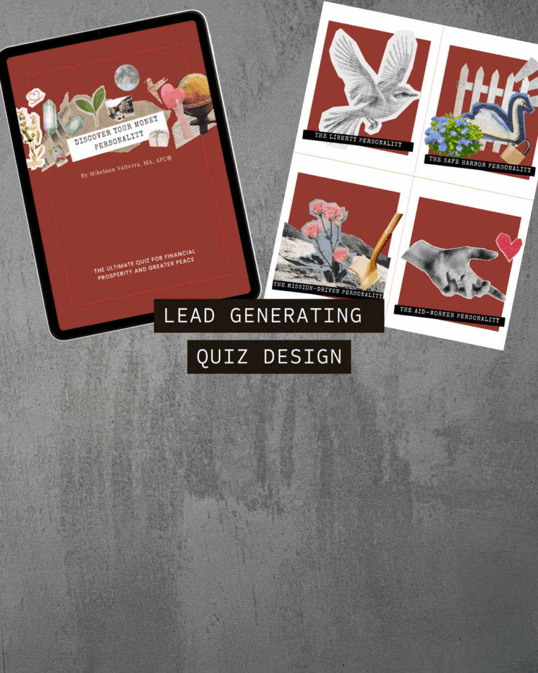 - A custom interactive quiz that converts website visitors into qualified coaching leads by helping them identify their relationship with money