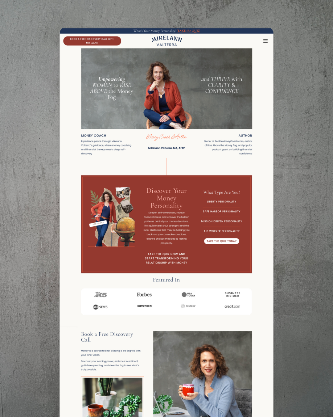 - A complete rebrand centered on Mikelann as a person, not a geographic location — moving from SeattleMoneyCoach.com to mikelannvalterra.com